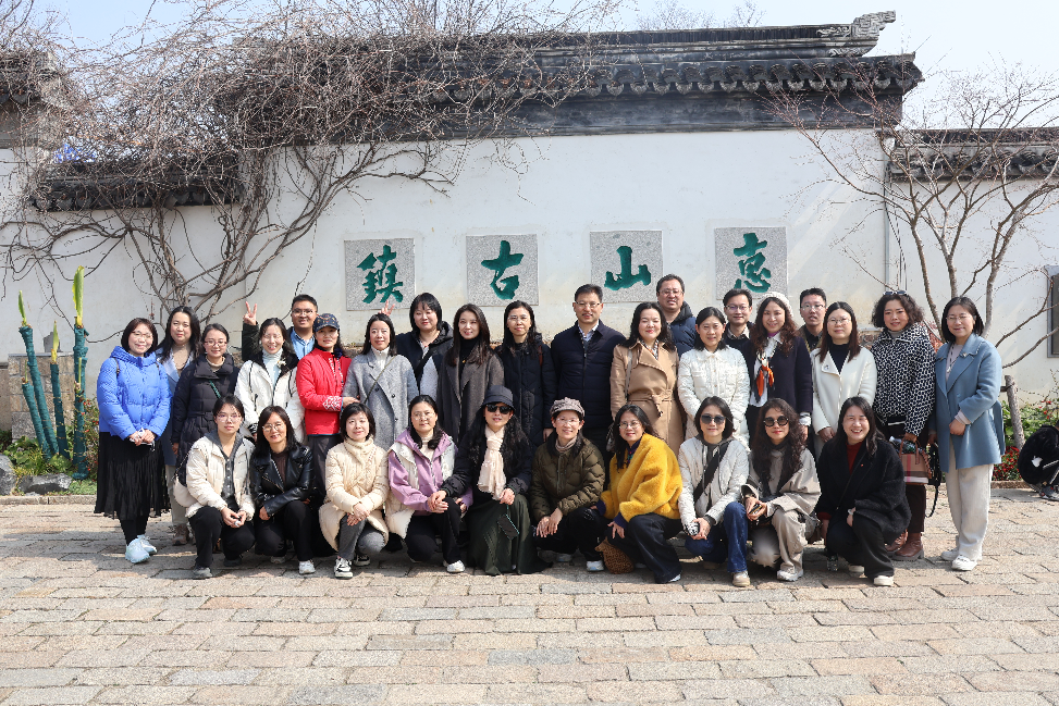 上午,研学团队首站抵达无锡惠山古镇。在映月里历史文化街区,女教职工们沿斑驳的青石板巷徐徐而行,檐角风铃轻响,百年祠堂次第排布,仿佛翻开了一部立体的江南氏族志。移步寄畅园,在讲解员的带领下聚焦园林空间布局与文人意趣的互动,从叠山理水的匠心到“借景锡山龙光塔”的巧思,解析园林作为“立体史书”的文化象征意义。